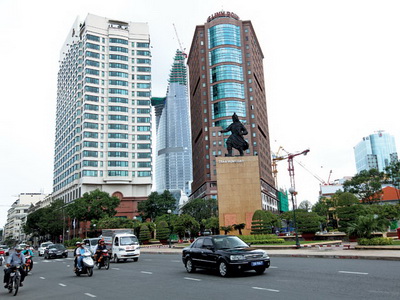 trong lúc 20 ô phố vàng đang đợi nhà đầu tư thì cao ốc vẫn mọc lên khắp nơi trong khu trung tâm. Ảnh: Lê Quang Nhật