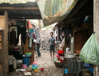 Nhiều hộ dân muốn xin giấy phép xây dựng, phải cam kết sẽ không được bồi thường khi di dời. Thời gian di dời chưa biết, nơi tái định cư chưa biết, nên chẳng ai muốn bỏ tiền ra để rồi… mất trắng. Thôi thì cứ tạm bợ. Tạm bợ đến như nhà của ông Nghiêm Tiến Dũng cách đây hơn 1 tháng một mảng lớn trần gỗ tầng 2 bỗng dưng đổ sập; nhiều mảng tường thối vữa cũng lở lói ngổn ngang và ông Tiến đành phải bỏ nhà.