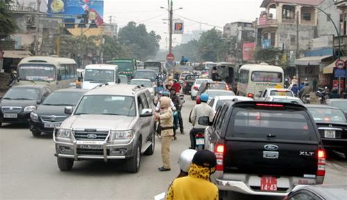 | Cảnh ùn tắc giao thông này trên tuyến đường Mai Dịch – Nội Bài hi vọng sẽ chấm dứt khi đường được mở rộng – Ảnh: T.pHÙNG |