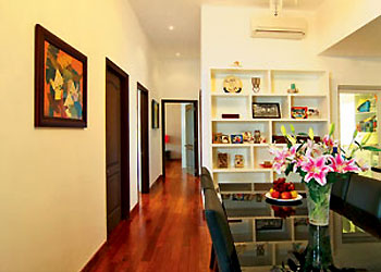 Các trang trí khác làm cho căn nhà thêm sinh động như bàn áp tường với tấm gương ngay cửa để đón khách. Chiếc kệ ngay bàn ăn để các vật lưu niệm và ảnh gia đình thể hiện tình cảm nơi gia đình thường sum họp. Bức tranh dọc hành lang như điểm dừng mắt khi đi ngang qua. (Theo SGTT) |