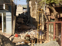 Công trình xây dựng không phép gây sụt đất tại thị trấn Quốc Oai cuối năm 2008. (Ảnh: Nguyễn Hưng)