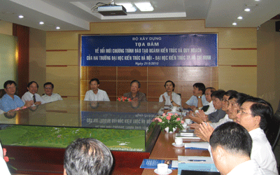 Ngày 21/5/2010, Tại trường Đại học Kiến trúc Tp.HCM đã diễn ra buổi tọa đàm về “Chương trình đào tạo đổi mới ngành kiến trúc và quy hoạch đô thị” của hai trường Đại học Kiến trúc Tp.HCM và trường Đại học Kiến trúc Hà Nội. Bộ trưởng Bộ Xây dựng Nguyễn Hồng Quân và Thứ trưởng Bộ Xây Dựng Nguyễn Đình Toàn đã dự buổi tọa đàm. Hai trường đã trình bày chương trình đổi mới giảng dạy 2 ngành kiến trúc và quy hoạch đô thị. Theo chương trình mới, các môn học cũ, không cần thiết sẽ được lược bỏ, giảm bớt để tăng thời lượng cho các môn học chuyên ngành và bổ sung một số phần lý thuyết chuyên ngành, những vấn đề mà nhu cầu xã hội đang cần. Sau khi nghe 2 trường trình bày chương trình đổi mới, Bộ trưởng Nguyễn Hồng Quân băn khoăn về số lượng tín chỉ cũng như thời gian đào tạo của 2 trường chưa thống nhất. Bộ trường yêu cầu 2 trường phải thảo luận, cân nhắc sao cho các học phần của 2 trường phải tương đồng… Đồng thời Bộ trưởng Nguyễn Hồng Quân cũng yêu cầu hai phải trường với uy tín và thương hiệu của mình phải đào tạo được những sinh viên có năng lực, chất lượng để đáp ứng yêu cầu của xã hội. Thứ trưởng Nguyễn Đình Toàn đề nghị 2 trường tiếp tục cùng nhau nghiên cứu, thảo luận để xây dựng chương trình đổi mới vừa tiên tiến, vừa thống nhất nhưng cũng vừa giữ được nét riêng của mình./. |