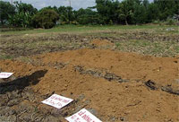 Chiều 24-2, chúng tôi trở lại khu đất nơi đã diễn ra lễ động thổ thì nơi đây trống trơn, bốn phía chẳng một bờ rào. Trên mặt ruộng trơ rạ, dấu tích của dự án chỉ là một đống cát – “đạo cụ” của nghi thức động thổ.