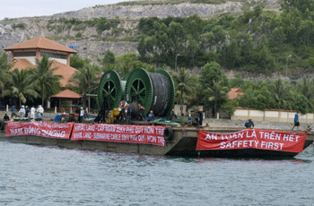 Biến ý tưởng thành hiện thực “Ý tưởng về thực hiện một tuyến cáp ngầm vượt biển cung cấp điện lưới quốc gia cho Vinpeal Land hình thành từ khoảng tháng 6/2008. Được lãnh đạo tập đoàn Technocom đồng ý, chúng tôi đã tiến hành gặp các đơn vị tư vấn, chọn đơn vị thi công, cung cấp cáp. Sau khi tính toán kỹ lưỡng về chất lượng, kỹ thuật, giá thành…, chúng tôi đã chọn nhập cáp từ Trung Quốc, Cty TNHH thương mại dịch vụ xây dựng Nam Đông Dương làm nhà thầu thi công. Khó khăn lớn nhất là công trình dẫn cáp ngầm vượt biển đầu tiên tại Việt Nam, các đơn vị tư vấn lẫn nhà thầu thi công đều chưa có kinh nghiệm, trong khi chúng tôi lại không muốn kêu gọi các Cty nước ngoài mà muốn dùng khả năng của người Việt Nam. Chính vì thế, khi lập dự án chúng tôi phải mày mò, đọc tài liệu để học hỏi kinh nghiệm của các nước châu Âu, tham khảo sách báo, internet”. Ông Trần Phi Long, kỹ sư trưởng Cty CP Du lịch Vinpearl Land cho biết như vậy.