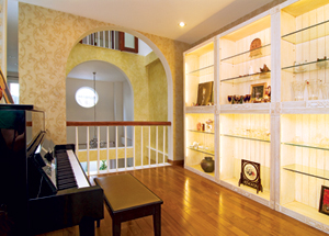 Từ đó, tận dụng triệt để khoảng trống ngay trong lòng ngôi nhà làm các không gian thoáng đãng hơn như các khu vực phòng ăn, phòng sinh hoạt chung, phòng đọc sách. Các hành lang chạy xung quanh thông tầng cũng tạo nên những góc nhìn có chiều sâu. Góc nhìn đan xen lẫn nhau từ không gian này xuyên qua không gian kia. Từ trên nhìn xuống và từ dưới nhìn lên tạo nên cảm giác thú vị cho căn nhà này.