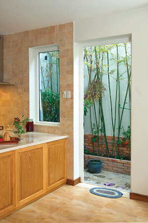 Từ bếp bước ra cũng là khoảng sân sau với cây xanh