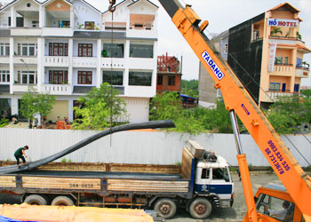 Vật tư đang được chuyển vào công trình xây dựng. Ảnh: Hồng phúc.