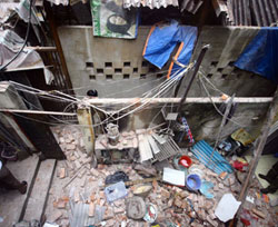Sự cố đã làm hầu hết hộ dân sống trong tầng 2 bị ảnh hưởng nặng nề. Tại hiện trường, số nhà 146 bên cạnh bị lấp đầy gạch ngói, còn phần mái của dãy nhà dùng làm bếp và kho có tường áp sát với số nhà 148 cũng đã bị gạch ngói làm thủng hết.