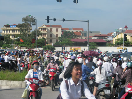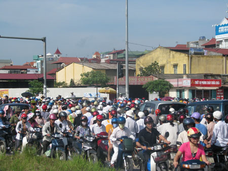 | Dòng người tràn hết cả sang phần đường đối diện |
