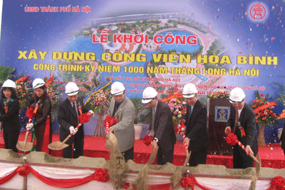 Hôm nay (24/2), Hà Nội chính thức khởi công xây dựng công viên Hoà Bình tại xã Xuân Đỉnh, huyện Từ Liêm. Công viên có diện tích trên 20ha, tổng vốn đầu tư 282,38 tỷ đồng từ ngân sách TP, dự án được giao cho Sở Xây dựng làm chủ đầu tư và trực tiếp quản lý. Đây là một trong những công trình hướng tới Đại lễ kỷ niệm 1000 năm Thăng Long-Hà Nội. Đặc biệt tại đây sẽ xây dựng tượng đài tôn vinh giá trị Hoà Bình là biểu tượng của Thủ đô, tượng được đúc bằng đồng đỏ (hoặc mạ vàng) cao 3,6m theo mẫu của biểu tượng “Thành phố vì Hòa Bình” do UNESCO trao tặng Hà Nội. Quy hoạch chi tiết công viên Hòa Bình sẽ được đăng tải trên Báo Xây dựng số tới.