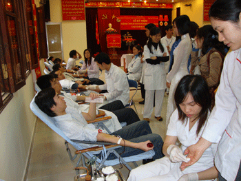 Sáng 26/3, tại Bệnh viện Xây dựng, Đoàn TNCSHCM Bộ Xây dựng đã tổ chức Lễ kỷ niệm 79 năm thành lập Đoàn và Ngày hội Hiến máu nhân đạo. Đây là hoạt động có ý nghĩa cao đẹp của Đoàn thanh niên Bộ Xây dựng góp phần chia sẻ với những người không may mắn. Đáng chú ý trong số những người đăng ký hiến máu có người lần đầu tiên tham gia, có người đã nhiều lần hiến máu, và có những người từ xa về HN hiến máu như 7 đoàn viên của trung tâm phục hồi chức năng Sầm Sơn (Thanh Hóa). Với khẩu hiệu “Sẻ giọt máu đào trao niềm hy vọng”, “một giọt máu một tấm lòng”…trong buổi sáng nay đã có hơn 100 đoàn viên thanh niên đến từ các đơn vị thuộc Bộ Xây dựng đăng ký hiến máu. Lượng máu thu được ước khoảng 100 đơn vị. Số máu này sẽ được chuyển tới Viện Huyết học truyền máu trung Ương để cung cấp cho những người không may bị bệnh cần truyền máu. |