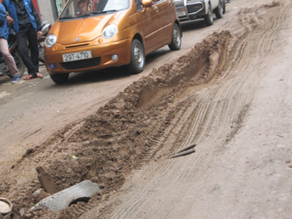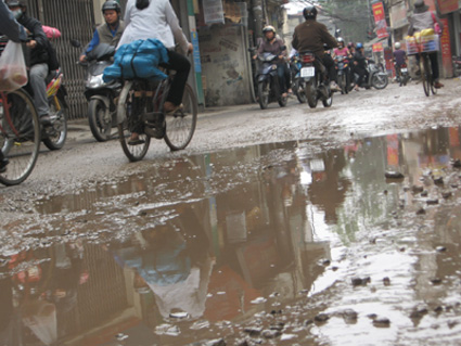 Mỗi lần có ôtô qua, nước ở những hố trũng bắn tung toé, giội nước bẩn vào những người đi xe máy bên cạnh. Lòng đường xuất hiện nhiều “ổ gà”, mưa xuống tạo thành “ao”, nên rất dễ gây tai nạn và ùn tắc giao thông. Theo LĐ