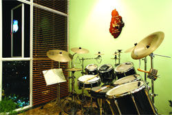 Bộ trống, niềm đam mê của Ngọc Quân, được đặt trong phòng khách, tượng trưng cho mạng Kim |