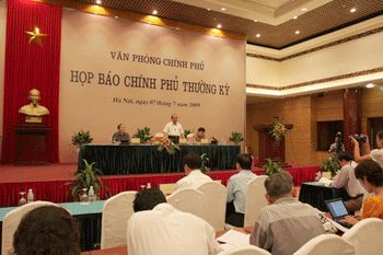 Ngay sau khi kết thúc phiên họp thường kỳ của Chính phủ, chiều 7/7/2009, tại Hà Nội, Văn phòng Chính phủ đã tổ chức họp báo dưới sự chủ trì của Bộ trưởng – Chủ nhiệm Văn phòng Chính phủ Nguyễn Xuân Phúc. Tham dự buổi họp báo còn có Thứ trưởng Bộ Kế hoặch & Đầu tư Cao Đắc Sinh, Thứ trưởng Bộ Thông tin & Truyền thông Đỗ Quý Doãn, Thứ trưởng Bộ Giao thông & Vận tải Lê Mạnh Hùng, đại diện lãnh đạo Bộ Công thương, Bộ Tài chính và Bộ Y tế.