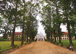 Kiến trúc cổ của nhà thờ lòng sông lọt thỏm trong tàng sao xanh cổ thụ.