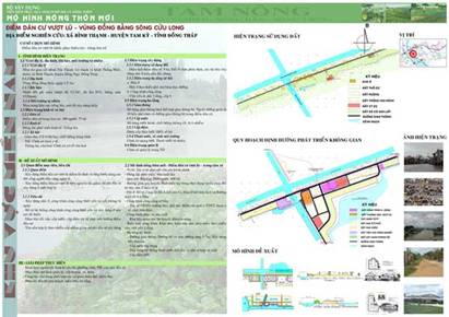 3. Vùng miền Trung (Bắc Trung Bộ và Duyên hải Nam Trung Bộ) 4. Vùng Tây Nguyên 5. Vùng Ðông Nam Bộ 6. Vùng miền Tây Nam Bộ (Ðồng bằng sông Cửu Long) Kết luận Kiến nghị Cho phép tiếp tục thực hiện các cơ chế chính sách theo tinh thần Quyết định 120/2005/QÐ-TTg và Quyết định 25/2008/QÐ-TTg cho khu vực nông thôn đối với vùng sâu, vùng xa, vùng biên giới, vùng đồng bào dân tộc để giúp người dân trong xây dựng nhà ở, tiếp cận thông tin, khoa học công nghệ… Ðưa công tác quy hoạch nông thôn trở thành nhiệm vụ chiến lược vừa mang tính cấp bách và mang tính lâu dài, lấy nông dân là chủ thể của quá trình phát triển, xây dựng nông thôn mới gắn với xây dựng các cơ sở công nghiệp, dịch vụ và phát triển đô thị là căn bản. Nhiệm vụ trước mắt đến 2010 xây dựng các mô hình thí điểm đặc trưng cho các dạng dân cư nông thôn theo các vùng miền, từ đó rút kinh nghiệm và nhân rộng trên toàn quốc. TS. KTS. Nguyễn Ðình Toàn |