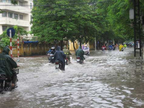 Anh Nguyễn Phúc Lập, một nhân viên làm việc trên tuyến phố trên nói: “Mưa chỉ ngắn thế mà khi nước đã lênh láng, không thể đi xe máy được nên tôi buộc phải gửi xe trên tận đường đê để đi bộ vào cơ quan…”.
