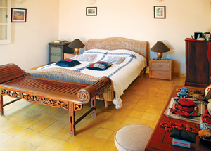 Họ vốn xuất thân từ miền Nam nước Pháp, vùng đất với nhiều dáng dấp Hy Lạp vì có những vách đá, mặt trời, biển xanh, một đặc tính rất Địa Trung Hải. Vì lẽ đó, bằng cách trang trí, nữ chủ nhân đã cố gắng phục hiện cái nắng nóng, mặt trời, cái chất vùng Provence nằm ở phía Nam nước Pháp. Khi họ tìm ra ngôi nhà này, nó đang trong tình trạng xây dựng, vì thế họ đã tham gia và hoàn tất kế hoạch xây dựng và bài trí với nguồn cảm hứng phong cách Provence. Họ cần sống với mặt trời, vì thế vào ban ngày họ đã mở tung ngôi nhà bằng vô số cửa sổ, để rồi chiều về đóng lại bằng những cánh cửa sơn xanh thiên thanh vùng Provence. Mái ngôi nhà được lợp ngói, tường trát vữa sần rồi tô nhẵn màu trắng và nền lát gạch màu đỏ lửa. Provence, vùng đất vốn nắng nóng và được nhận diện bởi những sắc màu đặc trưng, thì trong trường hợp này lại được nhận diện bởi những đồ vật bằng gỗ và sắt. Những màu chủ đạo của phong cách Provence thường có dáng dấp tự nhiên và vui tươi, theo truyền thống đó là màu vàng nghệ và màu xanh oải hương. Bên trong ngôi nhà được bao phủ bằng những mảng gạch ca rô nhỏ bằng đất nung màu vàng sậm và vài mô típ trang trí kiểu thuộc địa. Nội thất ngôi nhà chủ yếu có nguồn gốc Trung Quốc, được mang về từ những chuyến du lịch của chủ nhân hoặc mua từ Việt Nam ở các tiệm bán đồ cổ trên đường Lê Công Kiều cách đây 10 năm, rất rẻ vào thời đó, hay trong vài cửa hàng trang trí ở trung tâm thành phố. Người ta cũng tìm thấy ở đây những đồ gỗ kiểu thuộc địa (những chiếc ghế Charleston, chiếc bàn thấp hút thuốc phiện), đồ gỗ Trung Quốc, những món đồ cổ truyền thống phía Bắc, Trung và Nam Việt Nam, tất cả đều bằng gỗ. Trên tường là những bức tranh do một người bạn vẽ tặng, mặt nạ mang về từ Bali, tranh vẽ từ Nhật Bản – đất nước mà nữ chủ nhân thường đến. Nhà bếp như một tia nắng nhỏ, soi sáng ngôi nhà bởi màu vàng xanh, bao bọc toàn bộ căn bếp được bố trí thành một khối. Tầng một ngôi nhà dành để nghỉ ngơi gồm có phòng ngủ và phòng nhỏ để chơi đùa, đọc sách, chúng được trang trí với các thiết bị nội thất đỏ kiểu thuộc địa của những năm 40, rất nghệ thuật về kiểu dáng, trộn lẫn với những chiếc ghế bành Thái Lan. Mỗi phòng đều có nhà tắm với màu sắc riêng và mảng ca rô với mô típ động vật. Hai căn phòng dành cho các con gái chủ nhân thật sự là “phòng công chúa”, với một chiếc giường có tán che hình vuông bằng sắt nung đen cho đứa con đầu và một chiếc giường có tán che theo kiểu Pháp năm 1825 cho đứa con thứ hai, phù hợp với một chiếc tủ mang phong cách Pháp làm bằng cây anh đào với những tua diềm màu sắc áp vào giữa tường, làm căn phòng thật sự sinh động. Phòng nổi bật theo phong cách Bohémie, với một chiếc giường bằng tre bện, một tấm khăn phủ giường được làm trong một nông trường tập thể ở Israel, một chiếc ghế dài lưng chếch bằng gỗ khắc, một bàn trang điểm phong cách nghệ thuật trang trí và những chiếc đèn ngủ cùng phong cách. Ngôi nhà này mang cảm hứng vùng Provence mở ra bên ngoài, với sân thượng là một phần không thể thiếu của không gian sống. Quanh hồ bơi, người ta có thấy những chiếc ghế và bàn ngoài trời bằng sắt nung và bằng tre bện, một môi trường rất ư Địa Trung Hải.