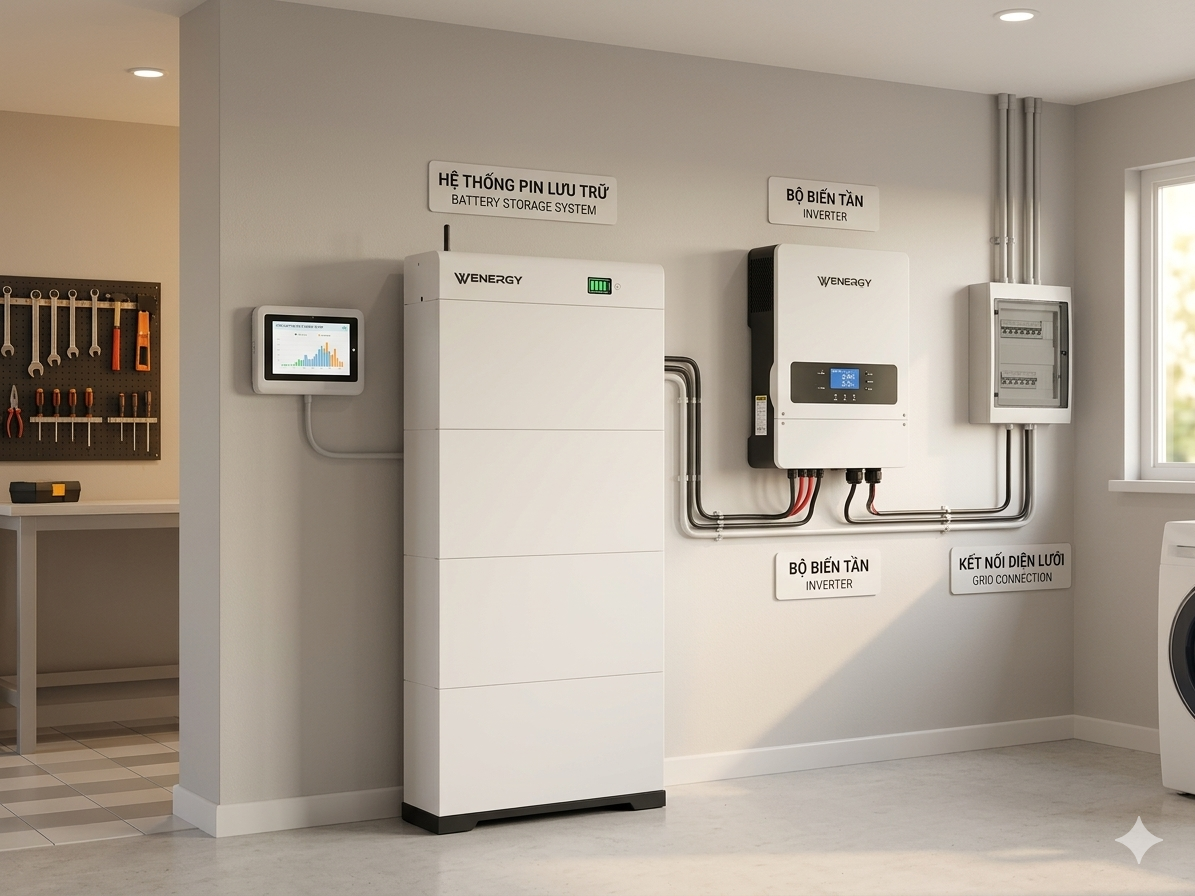 Pin lưu trữ điện gia đình là hệ thống tích trữ năng lượng điện để sử dụng khi cần, đặc biệt vào giờ cao điểm hoặc khi mất điện
