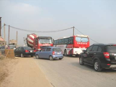 “Nếu muốn đi Sơn Tây, Ba Vì vào cuối tuần, chớ dại đi trên đường cao tốc Láng – Hòa Lạc” – đó là cảnh báo của anh Nguyễn Duy Hưng, quê Sơn Tây hiện đang làm việc tại Hà Nội. Chuyện tưởng đùa lại hóa thật. Con đường cao tốc thuộc loại hiện đại nhất khu vực phía Tây thành phố Hà Nội một thời là sự lựa chọn của những phương tiện muốn đến những nơi như Sơn Tây, Ba Vì, Phú Thọ, Sơn La… mà không muốn đi trên Quốc lộ 32 chật hẹp thì vài tháng gần đây cứ cuối tuần là… kẹt. Hôm nay, Chủ nhật 22/3, cũng không là ngoại lệ. Buổi sáng từ 8h30 đến 11h và buổi chiều từ 14h15 đến gần 17h (lúc nhóm PV baoxaydung.vn ra về để xử lý PS ảnh này), đoạn đường khỏang 2km từ Ngã tư Quốc lộ 70 với đường Láng – Hòa Lạc lúc nào cũng như nêm cối.
