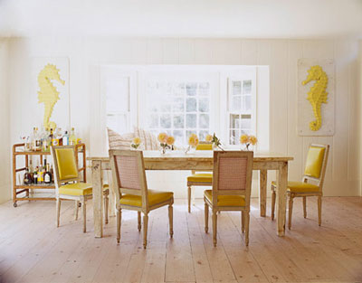 Thiết kế phòng ăn mang hơi thở của biển với những tác phẩm trang trí treo tường là những chú cá ngựa rất đáng yêu, bàn ghế ăn được thiết kế theo phong cách thời vua Louis 15 làm bằng chất liệu gỗ có đệm da màu lục nhạt. Hoặc chỉ là thiết kế phòng ăn thông thường nhưng sử dụng các màu sắc dịu mát của đồ gỗ được sơn trắng và đen. Phòng khách được thiết kế nhẹ nhàng tựa như những cơn gió làm xoa dịu cái nóng oi bức của mùa hè. Tông màu chủ đạo là màu trắng kết hợp với xanh da trời và các họa tiết trang trí màu trầm, bàn ghế bằng mây tre đan thiết kế theo kiểu Ý, một chiếc đèn bàn màu xanh đá…Tất cả mang đến sự dịu nhẹ và thanh thoát. Bạn có thể chọn cho phòng khách của mình một phong cách gần gũi hơn với thiên nhiên. Vẫn là các vật liệu làm từ tự nhiên như bàn ghế bằng mây tre đan, thêm vào đó là các họa tiết hoa trên gối và tường ốp đá trắng. Cũng giống như phòng khách, phòng bếp lấy màu trắng làm tông màu chủ đạo để mang lại một cảm giác sạch sẽ, thoáng mát và hấp dẫn hơn với các bà nội trợ khi mà mùa hè là lúc ai cũng ngại khi phải vào bếp. Phòng tắm với những màu sắc và đường nét đậm, sử dụng kết hợp màu vàng tươi tựa như những tia nắng cùng với màu trắng quen thuộc của phòng tắm, sự kết hợp này mang đến một mùa hè tươi đẹp chứ không hề oi bức. Lựa chọn phòng tắm được ốp đá tự nhiên với việc kết hợp màu trắng và tông màu đất sẽ mang đến cho bạn một không gian phòng tắm đầy thú vị. Hãy cùng biến phòng ngủ trở thành thiên đường với sự kết hợp màu sắc sáng tạo, khéo léo những tông màu sáng cùng các họa tiết đốm như những bông hoa mùa hè đang đua sắc tỏa hương. Hoặc thay vì chọn màu xanh và da cam, bạn có thể sử dụng màu nâu sô cô la để làm tăng độ “sexy” cho phòng ngủ. Mai Anh (Theo HB) |