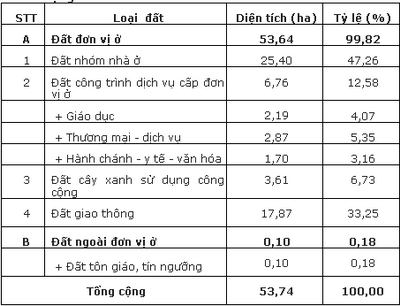 Dự kiến dân số trong khu quy hoạch đến năm 2020 khoảng 38.000 người; chỉ tiêu sử dụng đất đơn vị ở: 14,12 m2/người; chỉ tiêu sử dụng đất giao thông: 4,70 m2/người; chỉ tiêu đất cây xanh sử dụng công cộng: 0,95 m2/người; mật độ xây dựng chung: 40%; tầng cao xây dựng tối thiểu 02 tầng và tối đa là 51 tầng; tiêu chuẩn cấp điện: 2.500 KWh/người/năm; tiêu chuẩn cấp nước: 200 lít/người/ngày; tiêu chuẩn thoát nước: 290 lít/người/ngày.
