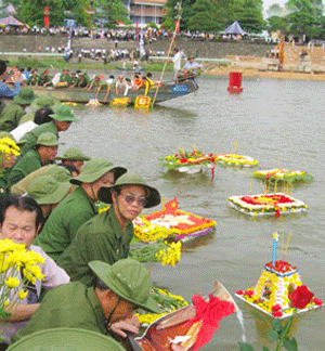 Buổi tối khánh thành Bến thả hoa bên dòng Thạch Hãn, cả một đoạn dài bên bờ sông chỉ có người và người. Là ngày hội nhưng rất ít tiếng nói cười, chỉ thấy những gương mặt trang nghiêm của già trẻ, gái trai. Và những bè hoa lung linh, chập chờn ánh nến, huyền ảo trôi trong đêm Thạch Hãn, như trôi về nơi có linh hồn những người lính ngã xuống năm nào.