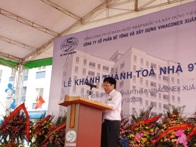 Thay mặt lãnh đạo Bộ Xây dựng, Thứ trưởng Cao Lại Quang biểu dương những đóng góp và sự nỗ lực của Vinaconex nói chung và Vinaconex Xuân Mai nói riêng là một trong những doanh nghiệp đi đầu triển khai chính sách của Chính phủ xây dựng nhà cho người có thu nhập thấp. phát biểu tại lễ khánh thành, ông Nguyễn Văn Tuân, Chủ tịch HĐQT Tổng Công ty Vinaconex đã hứa trước Đảng, Chính phủ và Bộ Xây dựng, Vinaconex sẽ tiếp tục bằng những hành động cụ thể, đóng góp nhiều hơn nữa để những người thu nhập thấp được hưởng lợi. “Vinaconex luôn coi xây dựng nhà ở xã hội là tâm và trách nhiệm của doanh nghiệp đối với cộng đồng. Vinaconex đã ban hành Nghị quyết tất cả các đơn vị thành viên trong Tổng Công ty học tập mô hình của Vinaconxe Xuân Mai để làm cho chính mình, sau đó là cho xã hội, cộng đồng” – ông Tuân khẳng định.