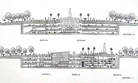 ![]() Mặt cắt ngang của dự án bãi đậu xe ngầm tại công viên Lê Văn Tám (ảnh: Sở GTVT TpHCM) |