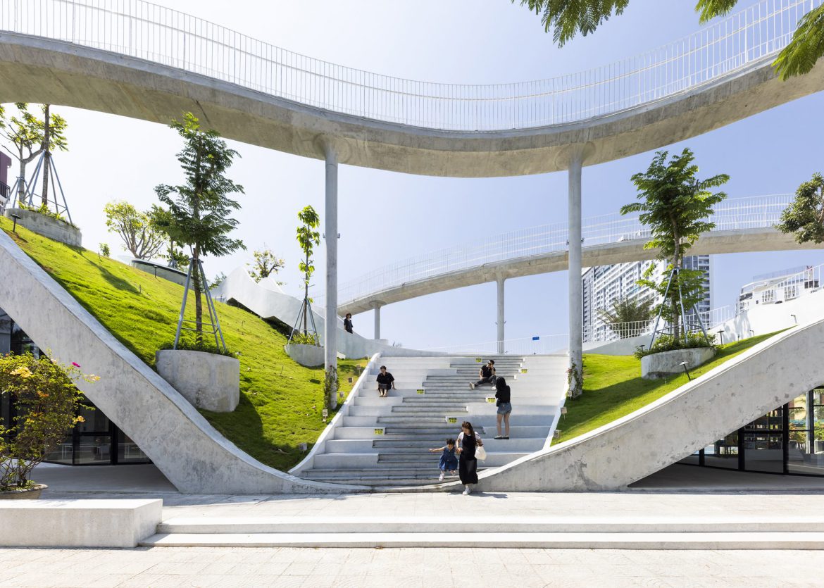 Trong đô thị hóa, mái nhà thường bị bỏ qua hoặc chỉ phục vụ cho các hạng mục kỹ thuật. Công trình này đã tái định nghĩa khái niệm ấy bằng một khu vườn trên mái, nơi không gian xanh được tận dụng tối đa. Không chỉ mang đến cảnh quan đô thị tươi mới khi nhìn từ trên cao, khu vườn còn tạo nên không gian thư giãn, giúp người dân kết nối với thiên nhiên trong lòng thành phố.