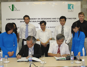 Hợp đồng tư vấn thiết kế chung cư cao tầng đô thị Ecopark trị giá 2,5 triệu USD. Công ty cổ phần đầu tư và phát triển đô thị Việt Hưng (VIHAJICO) – chủ đầu tư dự án khu đô thị thương mại và du lịch Ecopark – đã ký kết với Kume Design Asia Co.,Ltd thuộc KUME SEKKEI – Tập đoàn tư vấn thiết kế xây dựng hàng đầu Nhật Bản – hợp đồng tư vấn thiết kế chung cư cao tầng phân kỳ 1A01 của dự án Ecopark. Tổng giá trị hợp đồng lên tới 2,5 triệu USD. Khu chung cư cao tầng 1A01 là một trong những cụm công trình quan trọng nhất thuộc phân kỳ 1 rộng 54 ha của dự án Ecopark, nằm trên diện tích 4,01 ha với 160.500 m2 sàn xây dựng, bao gồm tổ hợp các khối nhà chung cư cao trung bình 20 tầng cùng các công trình tiện ích, hạ tầng kỹ thuật, các công trình dịch vụ như công viên, bể bơi, câu lạc bộ, công trình thể thao nội khu và cảnh quan môi trường hoàn chỉnh. KUME Việt Nam sẽ tư vấn cho VIHAJICO các hạng mục về tiêu chí thiết kế, thiết kế cơ sở, thiết kế kỹ thuật và thiết kế các bản vẽ thi công. Được biết, khu đô thị thương mại và du lịch Ecopark hiện là dự án đô thị lớn nhất miền Bắc với diện tích gần 500 ha, vốn đầu tư dự kiến 8,2 tỉ USD. Dự án chia làm 9 phân kỳ phát triển với phân kỳ 1 được hoàn thành vào năm 2013. VIHAJICO đã có sự đầu tư và hợp tác chặt chẽ với các đối tác uy tín trong khu vực, nhằm đảm bảo tính hiện đại, bền vững cũng như giá trị thẩm mỹ cao nhất cho các công trình được xây dựng trong khu đô thị. Việc ký kết hợp tác tư vấn với Kume Sekkei là một bước hợp tác quan trọng thể hiện nỗ lực và sự đầu tư nghiêm túc của VIHAJICO cho dự án đô thị sinh thái lớn nhất miền Bắc này. Tại lễ ký kết, Giám đốc Savills Việt Nam – ông Matthew Powell – chia sẻ: “Việc VIHAJICO lựa chọn Kume trở thành đối tác tư vấn sẽ tạo ra được sự tin tưởng và lợi thế cạnh tranh lớn cho dự án. Với phong cách làm việc chuyên nghiệp của chủ đầu tư cùng sự tham gia của các công ty tư vấn, thiết kế, xây dựng hàng đầu trong nước và quốc tế, dự án Ecopark chắc chắn sẽ trở thành một trong những dự án phát triển khu đô thị tiêu biểu trong năm tới”. (Theo Công Thương) |