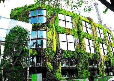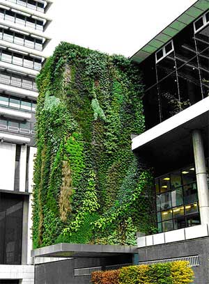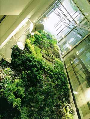 Những mảng xanh tự nhiên không nằm trên mặt phẳng ngang như thường thấy mà “bò” trên tường, trên các công trình chọc trời… sẽ là xu hướng phổ biến trong tương lai, đặc biệt khi đất chật, người đông, thiếu khoảng không dành cho cây cối. Patrick Blank, một người từng làm việc tại các viện bảo tàng ở Paris, Istanbul, Madrid và bảo tàng Nghệ thuật đương đại thế kỷ 21 tại Kanazawa…, đã tạo dựng một khu vườn thẳng đứng rất đẹp. Khu vườn có rất nhiều loại cây len lỏi vào không gian nội thất và tường bao. Patrick không chỉ đơn giản là thêm thắt màu xanh trên tường, ông đã nghiên cứu rất nhiều phương cách để cây có thể thích nghi với điều kiện rất đặc biệt này tại Trung tâm nghiên cứu khoa học của Pháp CNRS, từ năm 1982.